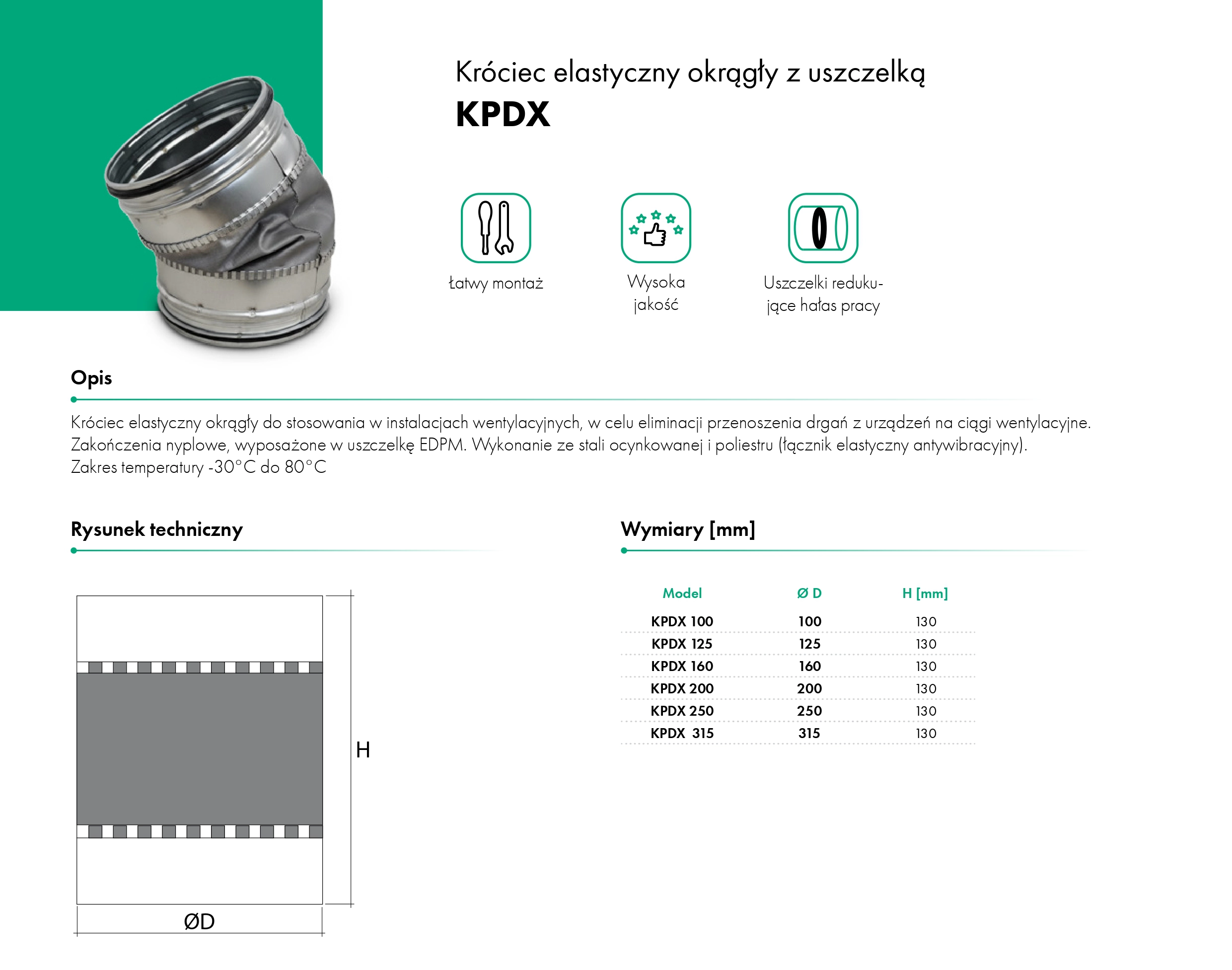 Wykonanie ze stali ocynkowanej i poliestru (łącznik elastyczny antywibracyjny).