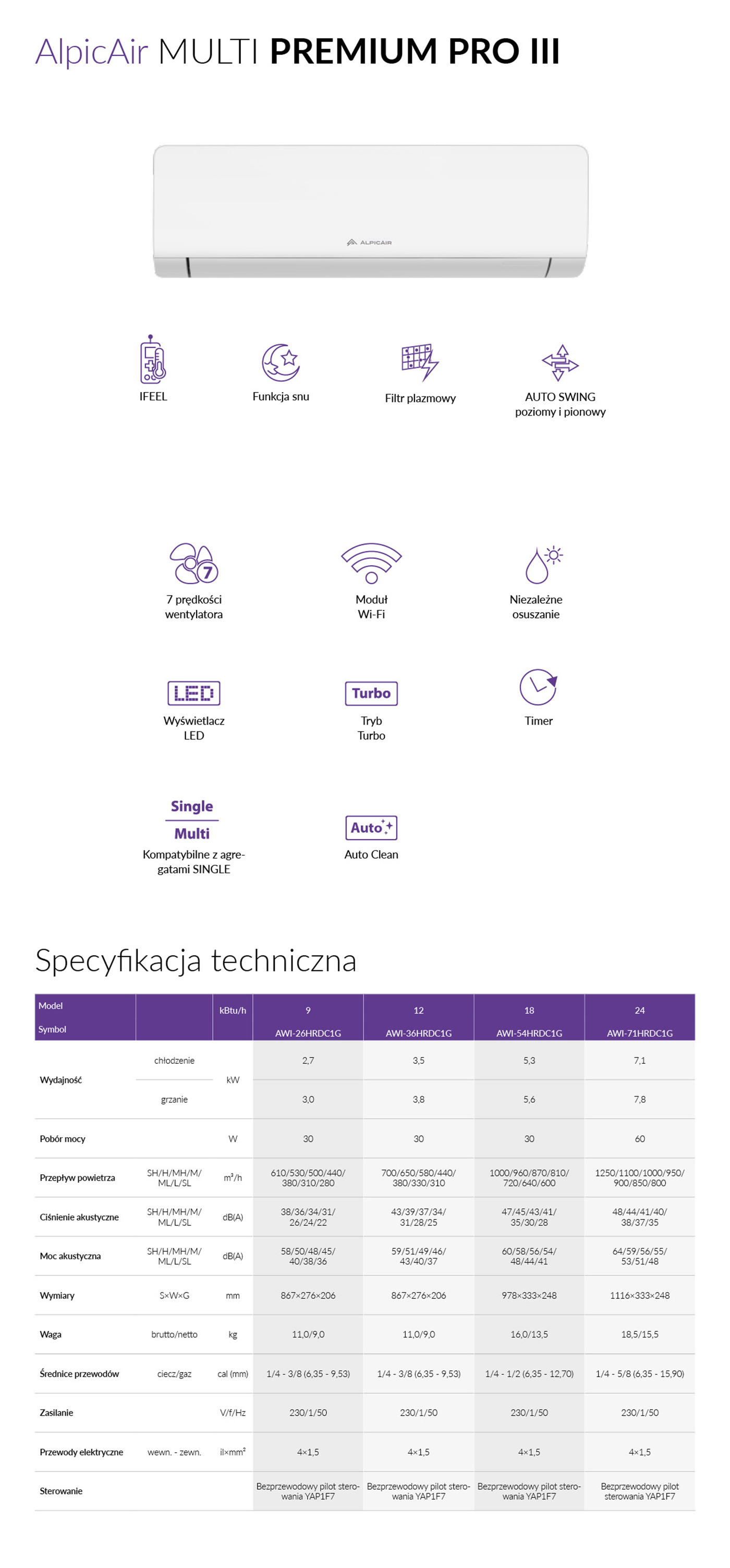 ALPICAIR Klimatyzatory MULTI - jednostki ścienne PREMIUM PRO III